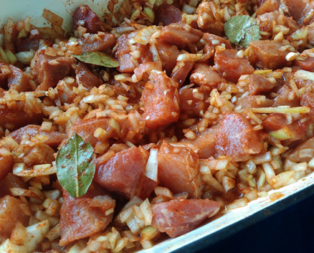 Suroviny: (4 porce) Masitá hovězí žebra 1 Kg Cibule 1 ks Česnek 3 stroužky Čerství zázvor, nakrájený 1 lžíce Mutti DOPPIO dvojitý rajčatový koncentrát v tubě 2 lžíce Mletá sladká paprika 1 lžíce Mletý římský kmín 1 lžička Uzená paprika 1 větší špetka Kajenský pepř 1 špetka Hnědý cukr 1,5 lžíce Voda 200 ml Olej […]