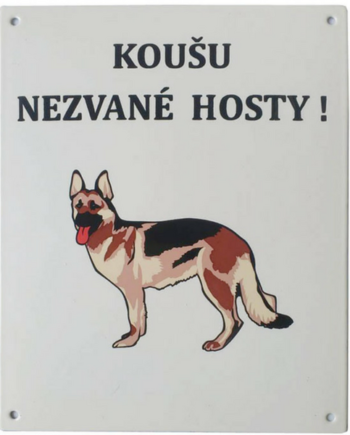 Smaltovaná cedule, originální s obrázkem vlčáka