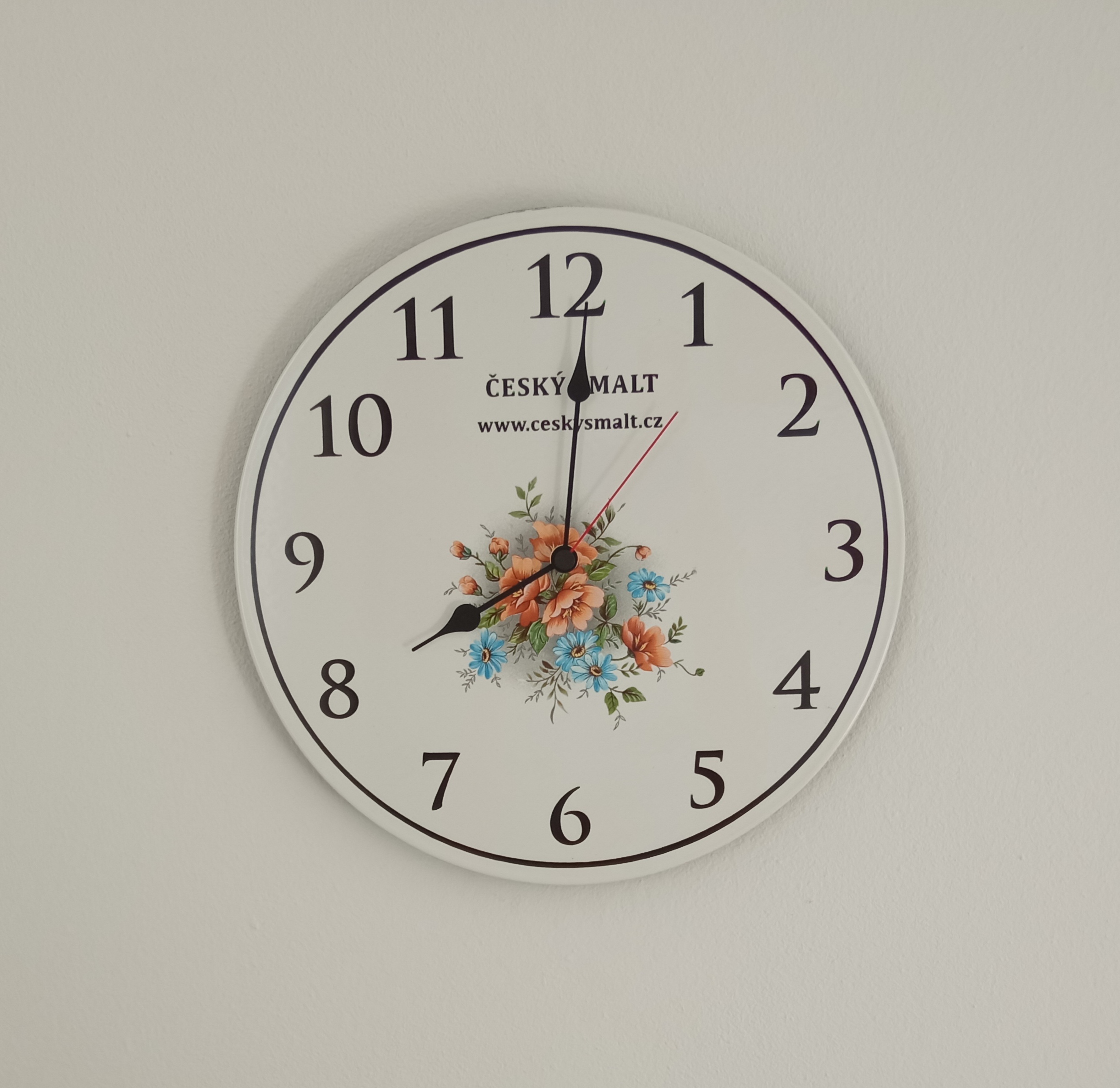 Hodiny – Text možno upravit dle požadavku – Český smalt – renovace litiny, prodej litinového nádobí, cedulí a smaltovaných výrobků