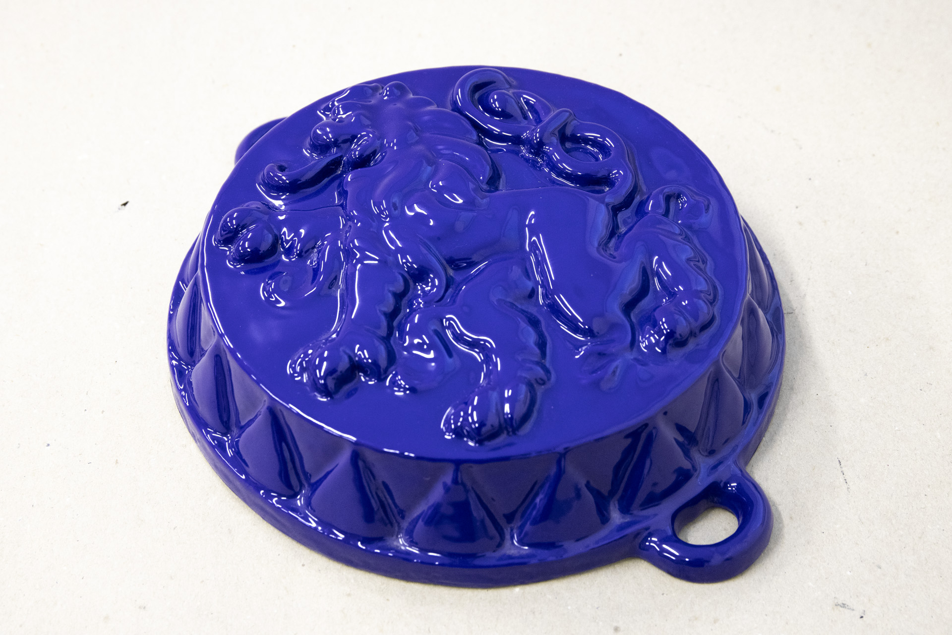 LEV – smaltovaná litinová pečící forma průměr formy 26,5 cm , barva – tmavá modrá – Český smalt – renovace litiny, prodej litinového nádobí, cedulí a smaltovaných výrobků