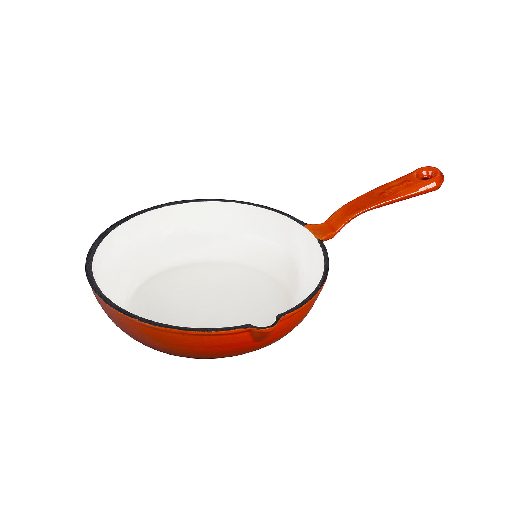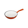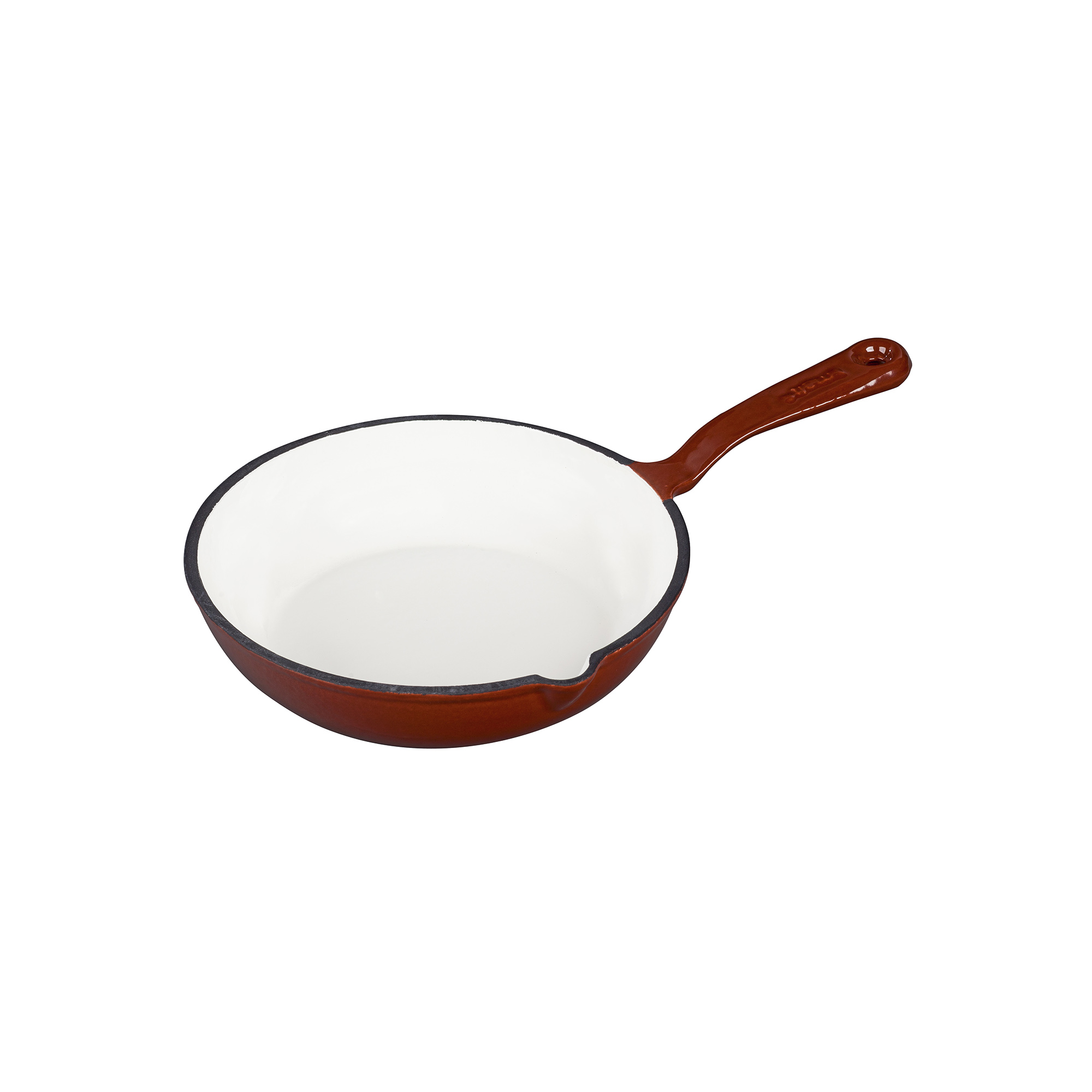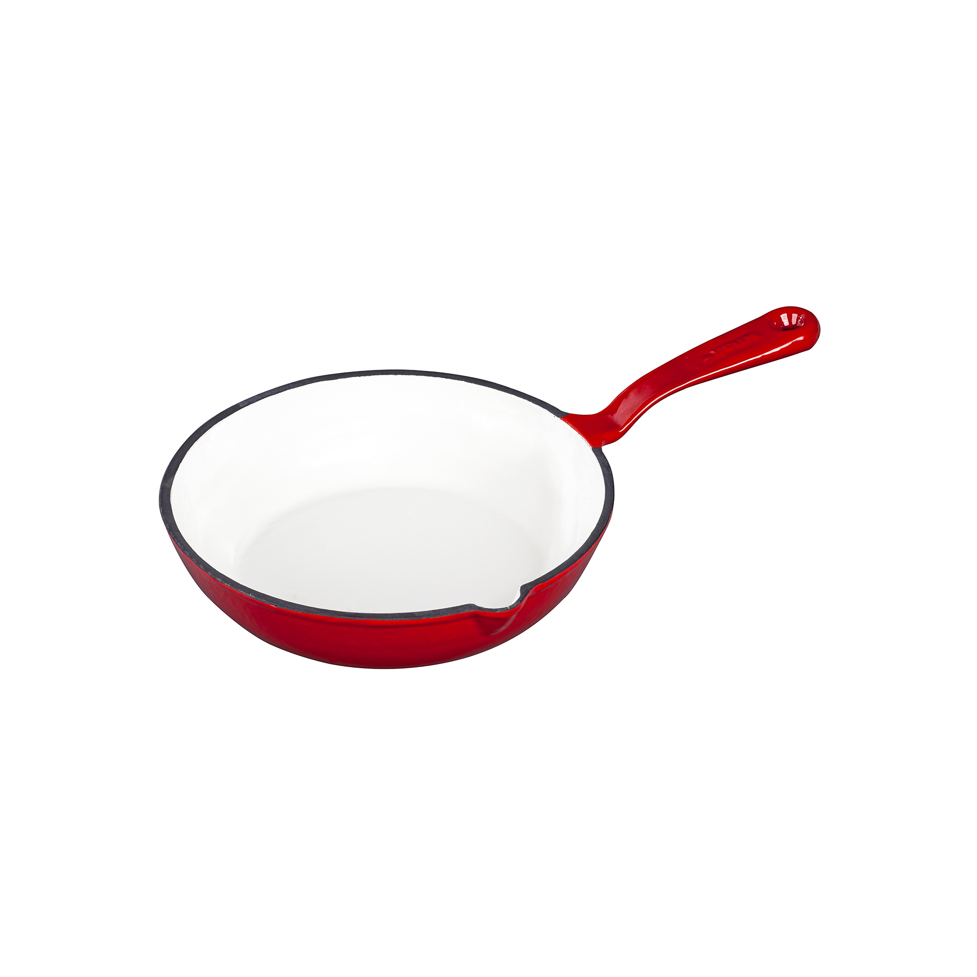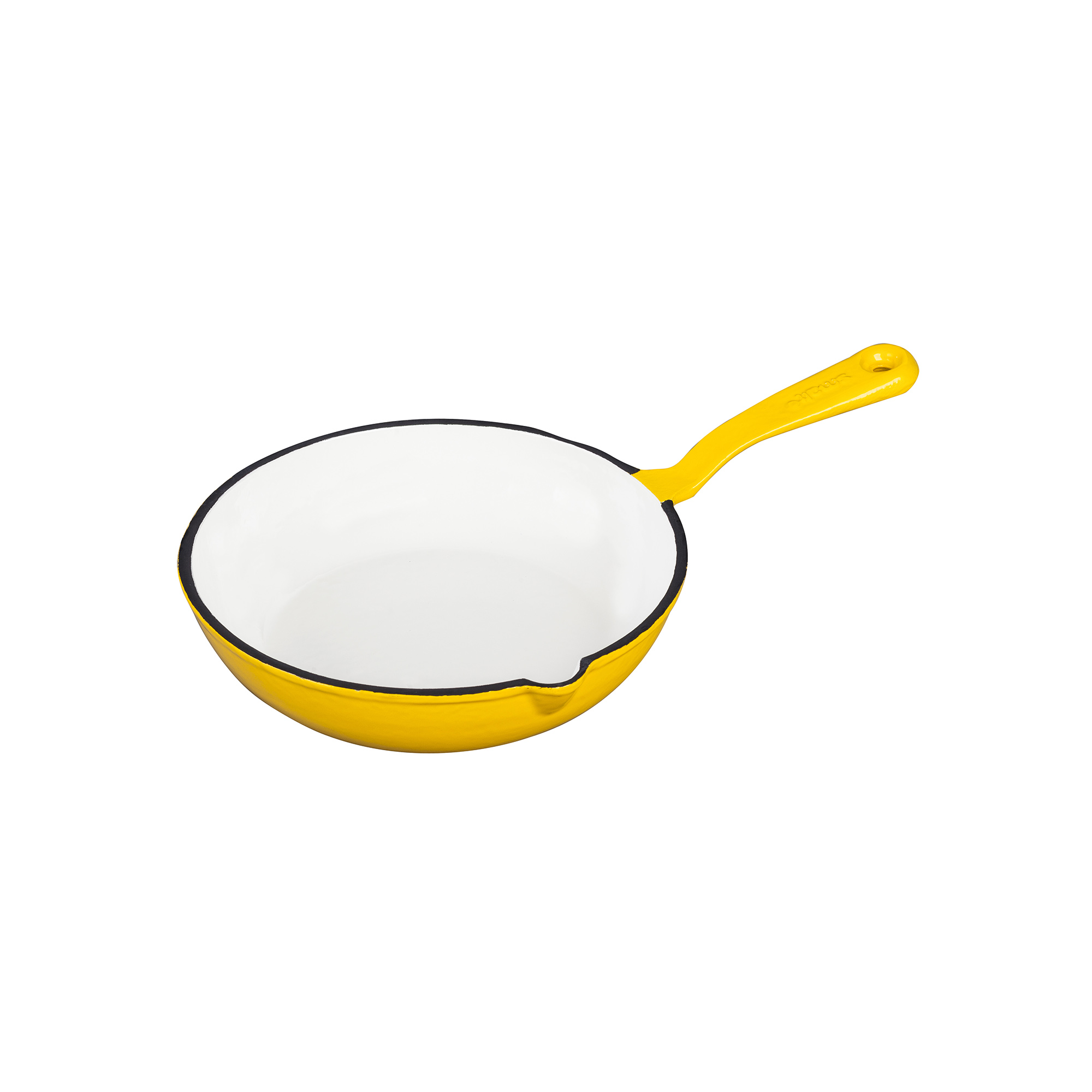 Povrch pánvičky je ve vnitřní části ručně smaltovaný bílým potravinářským smaltem. Barva smaltu na vnější části je pak zcela ve vaší režii. Vybírejte z naší pestré škály, případně je po domluvě možná také barva na vaše přání.