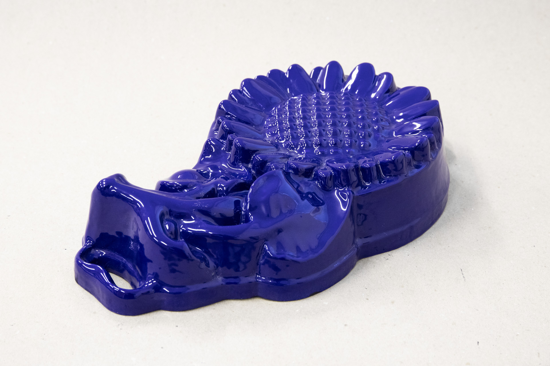 SLUNEČNICE -smaltovaná litinová pečící forma , 38,5 x 21,5 , barva tmavá modrá – Český smalt – renovace litiny, prodej litinového nádobí, cedulí a smaltovaných výrobků